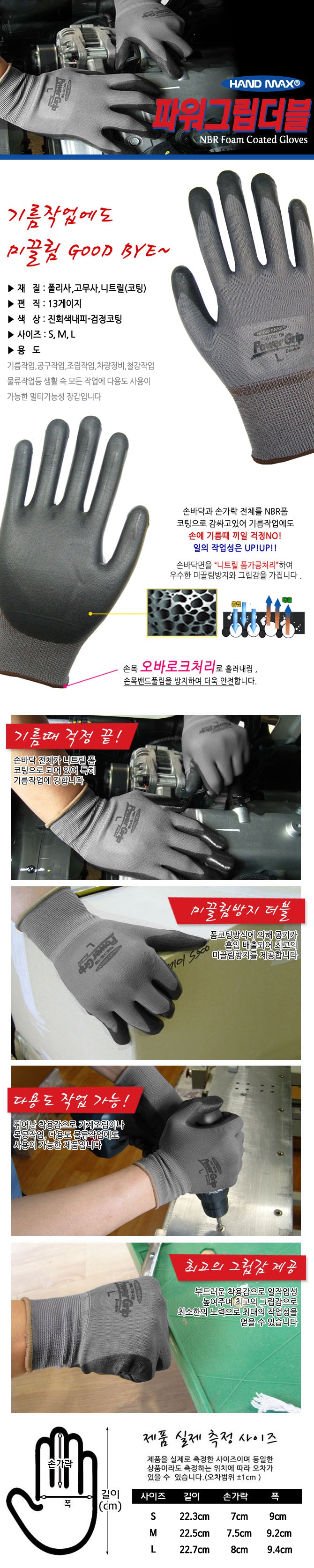 • [코레카]NBR코팅장갑/파워그립더블/회색/S/10PAIR