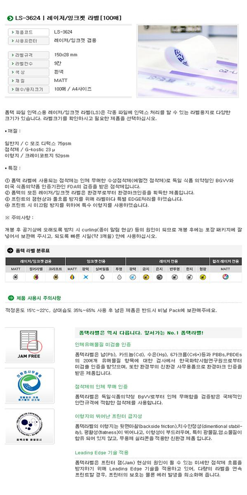 상품명 : 한국폼텍 화일인덱스 라벨 100매 9PCS LS-3624