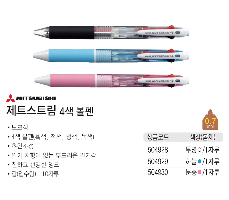 • 미쓰비시 제트스트림 4색 0.7mm 핑크바디 SXE4-500-07