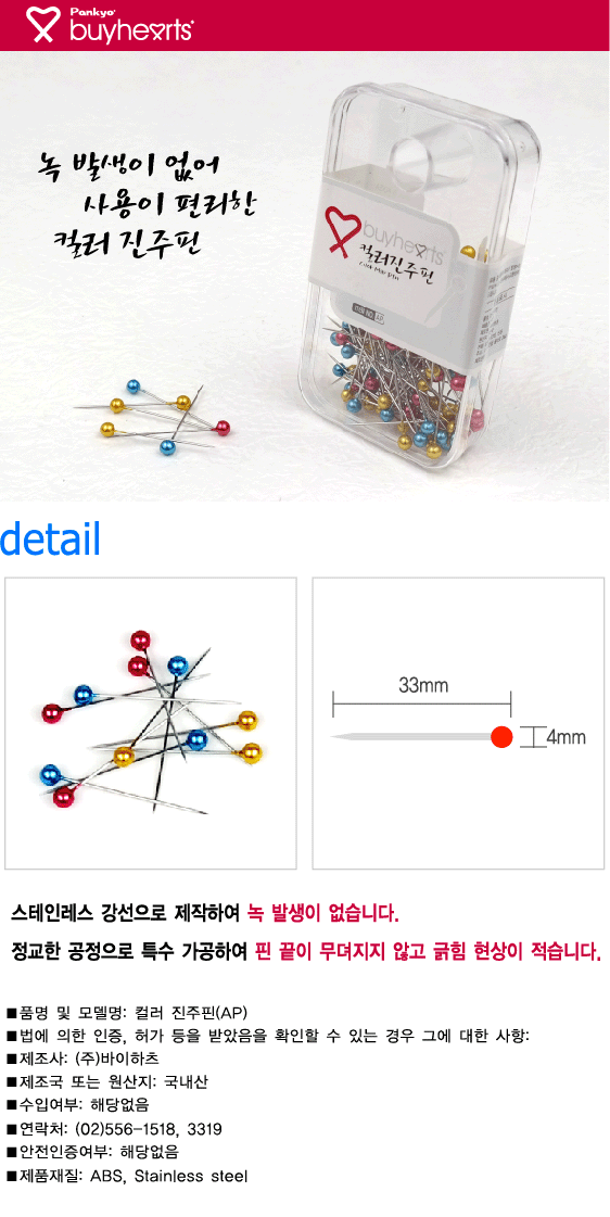 상품명 : 바이하츠 컬러 진주핀 AP (±130개입)